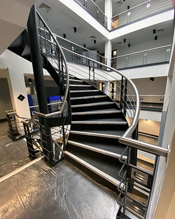 2 days, 6 floors of atrium, 18,923 sq. ft of flooring and here are some photos of the finished result.